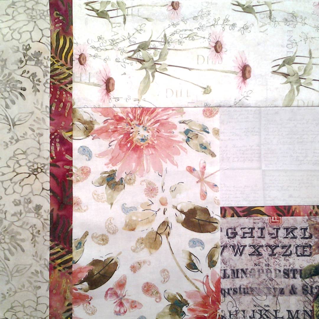 These Low Volume Florals & Bold Batiks create a dynamic look.